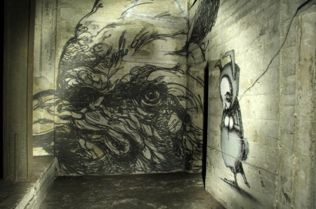 E dobbiamo dire che gli artisti in mostra hanno colto in pieno lo spirito di quest’arte. Alla mostra non vedrete una folla di visitatori che bevono vino e mangiano noccioline, non vedrete ragazze vestite di tutto punto con i tacchi a spillo. Ciò che vi troverete davanti, se riuscirete a trovare l’evento, è una serie di cunicoli inospitali e desolati che rappresentano il nuovo tempio di un’arte clandestina.
