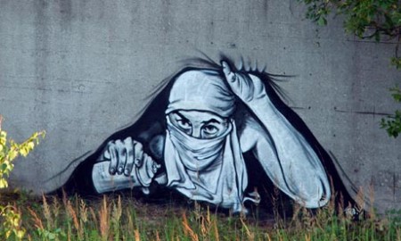 Ma questi, si sa, sono i rischi del mestiere e P183 sta già preparando un’azione storica su cui vige il più stretto riserbo. Guai a chiamarlo Banksy però: “Abbiamo una causa comune ma i nostri stili sono fondamentalmente diversi” ha dichiarato P183 alla stampa internazionale, noi però qualche somiglianza con il suo collega di Bristol la vediamo eccome. Street art di protesta anche in Spagna, a Valencia, dove Escif ha rappresentato alcuni agenti di polizia intenti ad aggredire un libro a suon di manganello.