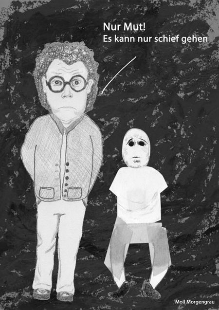 Per Moll Morgengrau non è certo un buon periodo. L’artista berlinese dopo aver finalmente trovato la galleria Galerie Verrückt disposta ad esibire i suoi lavori è caduto vittima della crisi finanziaria. La sua galleria ha infatti chiuso i battenti per mancanza di fondi annullando la mostra.
