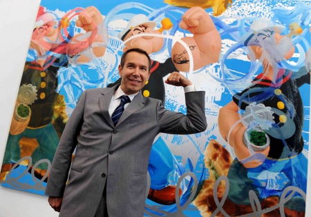 Jeff Koons ha precedentemente esposto alla Serpentine Gallery nel 1991 in una collettiva dal titolo Objects for the Ideal Home: The Legacy of Pop Art. In occasione del presente evento dal titolo Popeye Series il famoso artista presenterà alcune opere della sua serie dedicata a Popeye (braccio di ferro) iniziata nel 2002. Le opere sono contraddistinte dall’immaginario artistico di Koons che trae continuamente ispirazione dagli oggetti di uso comune, dal cartoon, dalla storia dell’arte e dai giocattoli. Grazie a prestiti da collezioni pubbliche e private la retrospettiva si avvale anche di opere fino ad ora mai mostrate al pubblico.Saranno presenti alla mostra anche delle sculture in alluminio che si accostano al mondo delle installazioni gonfiabili usate dai bambini in piscina, sperimentazione che l’artista porta avanti sin dalla fine degli anni ’70. Le figure di Popeye e Olive Oil (Olivia) sono inoltre la tematica principale delle opere pittoriche in mostra che si arricchiscono di immagini disparate ed oggetti di uso comune.