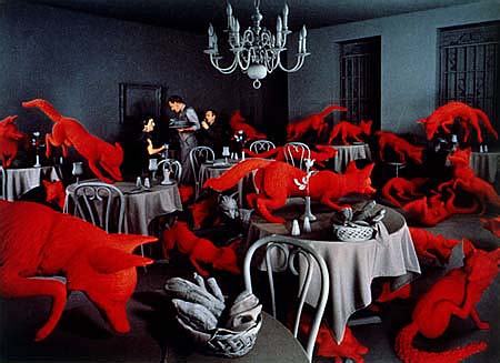 Con l‘introduzione di elementi e colori insoliti in una scena di banale quotidianità, Sandy Skoglund, mette in crisi lo spettatore, improvvisamente catapultato in un ambiente fantastico che risponde solo alla logica del sogno o dell’incubo, uno spazio senza tempo dove muoversi perdendo le proprie certezze.