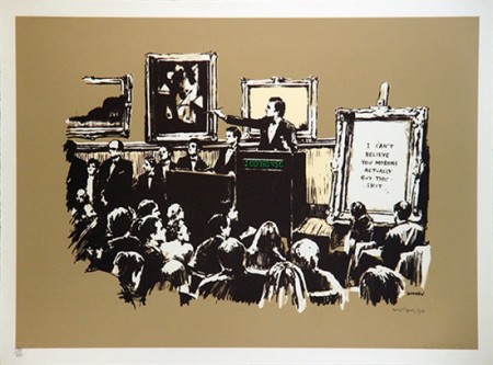Cinque stampe autografate da Banksy sono state contese da parecchi compratori. Alla fine, opere come Morons (Sepia) del 2007 ha totalizzato la bellezza di 7700 dollari contro una stima iniziale di 7000 dollari. Anche l’opera Jack & Jill (Police Kids) del 2005 è stata battuta per 7040 dollari contro una stima iniziale di 6000. Anche Shepard Fairey è riuscito ad attirare numerosi compratori, vendendo ben 15 opere. Rose Girl del 2008 è stata venduta per 1458 dollari contro una stima di 500 mentre Israel/Palestine del 2009 è stata venduta per 900 dollari contro una stima di 400, cifra niente male per delle stampe artistiche numerate.