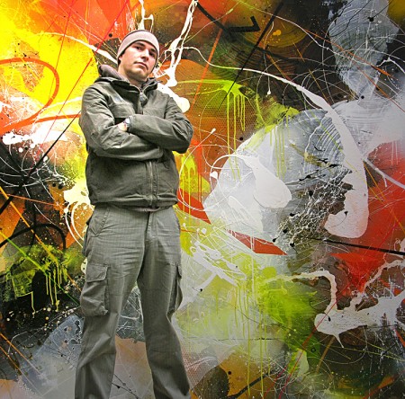 Caratteri Mobili come quelli dei primi graffiti sui treni della metropolitana di New York, caratteri mobili come la stampa di Gutenberg, caratteri mobili come quelle lettere che nei quadri di KayOne fluttuano in uno spazio di colore ed energia gestuale e materica. Pioniere a Milano quando i graffiti comparivano solo nelle serie riciclate dei telefilm americani, Marco Mantovani in arte KayOne classe 1972 ha cominciato nel 1988 a soli 16 anni. Oggi ha 37 anni e passa gran parte del suo tempo negli uffici dell’agenzia pubblicitaria Mantovani ADV, fondata insieme con suo fratello lavorando come art director e dipingendo quadri. Fondatore agli inizi degli anni ‘90 della prima rivista italiana di graffiti writing Tribe Magazine, non ha mai abbandonato la sua passione per l’arte ed il writing, che fa parte ancora oggi della sua quotidianità, organizzando e partecipando a numerose manifestazioni di writing ed eventi artistici in tutta Italia.