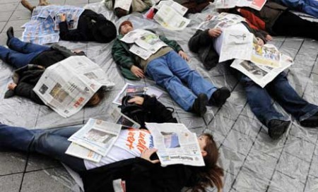 Il problema sorge con le comuni testate giornalistiche che pur non avendo una redazione in grado di riconoscere un Picasso da un Hirst continuano imperterrite a voler dedicare uno spazio all’arte, arrecando danni irreparabili alla cultura italica con articoli faciloni redatti da giornalisti che si improvvisano esperti per un giorno. Tali manifestazioni estemporanee create per dar lustro all’artista sfigato-raccomandato di turno o semplicemente per riassumere la poetica di Joseph Beuys in due colonne te le ritrovi li, stampate a bella posta sul tuo quotidiano di fiducia mentre sornione gongoli tra le avventure di Silvio Berlusconi e le bizze dello special one Jose’ Mourinho. La macabra danza della rubrica cultura e spettacolo è li che ti aspetta con gli ultimi sviluppi della rissa tra Simona Ventura e Fabrizio Corona a Porto Cervo che magari si accostano improbabilmente ad una retrospettiva su Tadeusz Kantor senza prima darti la possibilità praticare una veloce lobotomia prefrontale. Che dire poi di un’intervista fiume al più grande pittore naif di Pratola Peligna contornata da un accurato reportage sull’ultima mostra di fotografie scattate da Gina Lollobrigida, sono notizie che squassano e rielaborano l’intero sistema dell’arte contemporanea internazionale.