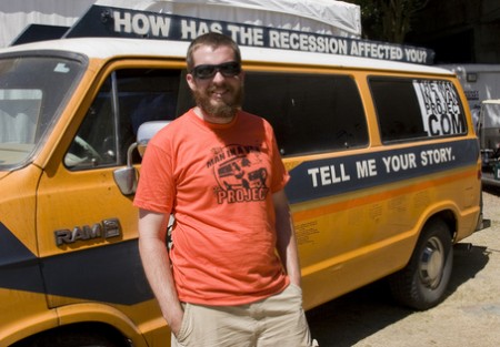 Dieci mesi fa Aaron Heideman, un artista 29enne dell’Oregon, ridotto sul lastrico dalla crisi economica che ha travolto gli Stati Uniti si è trovato nel giro di poco tempo a dormire nel suo furgone, l’ultima proprietà rimastagli. Invece che stare fermo, Aaron ha deciso di investire gli ultimi soldi in carburante e di attraversare gli Usa, raggiungendo tutti i luoghi dove la recessione ha fatto più danni. Ha già attraversato 20 stati, con un obiettivo: incontrare le persone che come lui avevano perso tutto, o quasi, e farsi raccontare le loro storie. «Voglio solo raccogliere racconti» spiega. Alcuni li hanno scritti direttamente sulla carrozzeria del furgone. Spinto dalla sua vocazione ha così creato un mezzo itinerante che vuole essere un’opera d’arte in divenire. Sulla fiancata c’è una scritta che spiega tutto: «Come ti ha colpito la crisi? Raccontami la tua storia». E, per raccoglierle tutte, visto che le fiancate si sono presto riempite, Heideman usa un rotolo di plastica sul quale le persone che incontra possono scrivere le loro testimonianze. Per ora il rotolo di plastica è già lungo 45 metri e sicuramente le sue dimensioni sono destinate a crescere in maniera esponenziale.