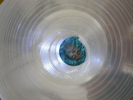La mostra si completa con un’installazione interattiva del 2006, Peephole, “spioncino”, attraverso cui lo spettatore è invitato a guardare. Questi però non riceve alcuno stimolo, in quanto non vi è nulla da vedere, l’unico segnale è dato da un leggero suono. Nel frattempo il ritratto dell’osservatore sarà proiettato su un pallone di gomma. Colui il quale vorrà guardare attraverso, perché stimolato dalla curiosità, sarà invece riflesso su un pallone visibile a tutti i presenti, ribaltando completamente il concetto più tradizionale del “voyeur”.