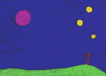 I lavori, visionari e dall’evidente matrice espressionista, sintetizzano dunque una realtà onirica, negli incredibili titoli sacra e profana, popolata da bizzarre teste antropomorfe prive di corpi, emoticon allucinati e divini su sfondi cosmici, cieli notturni, montagne, pianeti e costellazioni, paesaggi bidimensionali.