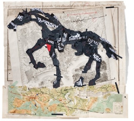Si tratta di opere legate alla serie degli Horse e Nose tapestries, proseguimento ideale della Porter Series, gruppo di lavori di dimensioni più contenute che presentano ombre in processione proiettate su carte geografiche, realizzati dall’artista a partire dal 2001. Se la prima serie – dichiara l’artista – raffigurava “porters”, questa è equestre. Si tratta di figure equestri antieroiche, in una crociata senza speranza attraverso la storia, cavalieri e cavalli in cerca di una terra promessa, piuttosto che della Terra Promessa”.