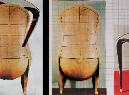 I collages, cha danno il titolo alla mostra, presentano storie in cui vecchi oggetti di design interagiscono e dialogano silenziosamente grazie a tagli, spostamenti e sovrapposizioni. Senza manipolazioni digitali, l’artista interviene attraverso meccanismi di taglio e sottrazione ottenendo combinazioni abbinate a didascalie che, mediante un’ulteriore azione di cancellazione, fungono da testi poetici “trovati”. Le sillabe residue compongono nuove frasi che si snodano come una storia possibile lungo le sequenze in cui gli oggetti si relazionano dandosi e negandosi gli uni agli altri.