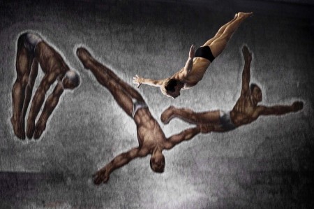 A quasi 40 anni dalla mostra dell’artista americano Joseph Kosuth, sensazionale incipit di una lunga e intensa avventura sempre a sostegno di proposte di qualità, Lia Rumma riparte con l’arte italiana ospitando la personale di Marzia Migliora, Forever Overhead. Sei nuove opere realizzate dall’artista facendo risuonare fonti diverse che spaziano dalla letteratura alla fisica, dalla storia dell’arte al quotidiano. All’origine del progetto espositivo, l’affresco della lastra di copertura della Tomba del Tuffatore di Paestum dove un giovane uomo è sospeso tra la colonna-trampolino da cui si è appena lanciato e lo specchio d’acqua sotto di lui. A quel corpo che vola, disegnando nell’aria un tragitto che accenna, nella lieve curva tra braccia e gambe, a un movimento circolare e perpetuo, si accompagna idealmente il racconto di David Foster Wallace – che dà il titolo alla mostra e all’omonimo video presentato – in cui, nella vertiginosa altezza di un trampolino, si consuma il rito iniziatico di un adolescente verso l’età adulta.