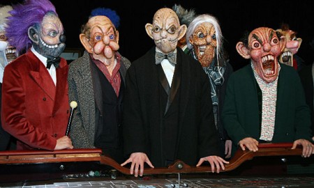 La Galerie Yvon Lambert è stata infatti trasformata in un grande casinò, con i modelli vestiti di tutto punto con i bellissimi abiti di Kimmel ma con in faccia delle grottesche maschere prese pari pari dai personaggi dipinti da Condo, incluso Jean-Louis, il frenchman ritratto dal pittore nella sua celebre serie Existential Portraits del 2006. “I vestiti che ho creato per la collezione di quest’anno sono ricalcano in pieno lo stile di Condo che è il più stiloso delinquente che io conosca” Ha dichiarato Kimmel in una recente intervista. Il curatore tuttofare Neville Wakefield, che è anche il direttore creativo della linea maschile di Kimmel, ha presentato Condo al celebre stilista alcuni anni fa: “Sono sempre in cerca di ispirazioni che fanno gola alla mia generazione e la mia generazione è decisamente ossessionata da George” ha aggiunto il celebre fashion designer. L’idea di costruire un grande casinò è stata tratta dal passato di Condo che è anche un famoso giocatore e passa quasi tutte le sue estati a Monte Carlo.