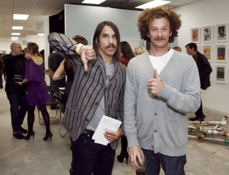 Ovviamente alcuni vips non si sono lasciati sfuggire quest’occasione ed a zonzo tra gli stand sono apparsi Anthony Kiedis, leader della celebre band Red Hot Chili Peppers, Drew Barrymore e Neil Patrick Harris. Anche le vendite sembrano essere andate piuttosto bene, come ha confermato Michael Briggs, direttore della galleria di los angeles Patrick Painter: “Esistono ancora seri collezionisti d’arte e comprano opere decisamente importanti”. Michelle Pobar, direttore della galleria Honor Fraser ha confermato la tesi di Briggs, aggiungendo: “Le opere che vendono di più si aggirano tra i 10.000 ed i 30.000 dollari, mi sembra che i collezionisti stiano reagendo positivamente a queste cifre”. Ovviamente le gallerie tengono le bocche cucite sui loro profitti in fiera ma è certo che alcuni artisti come Sage Vaughn (ritratto nella nostra foto assieme ad Anthony Kiedis) della galleria Kim Light, Erin Shireff della galleria Lisa Cooley e Kerry Tribe, Pae White e John Reynolds della galleria 1301 PE sono riusciti a finalizzare alcune vendite. Secondo Tim Fleming, direttore della fiera, la galleria 1301 PE è riuscita a totalizzare oltre 100.000 dollari di fatturato.