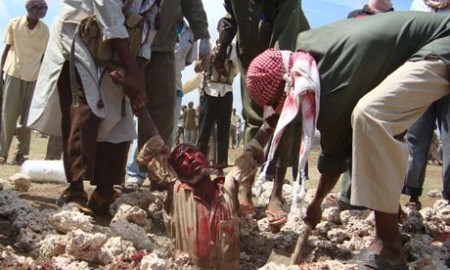Tra la galleria di foto dei vincitori del World Press Photo of The Year presente sul sito è possibile visionare una serie di 4 immagini intitolata Stoned to Death, Somalia, 13 December (Ucciso a sassate, Somalia, 13 Dicembre) del fotografo dell’associated press Farah Abdl Warsameh. Quelle immagini sono ancor più scioccanti di qualsiasi altro reportage di guerra. La prima foto mostra la vittima sotterrata fino al collo mentre la seconda mostra un gruppo di uomini che gettano pietre sulla sua testa. La terza foto mostra il prigioniero totalmente insanguinato che viene dissotterrato ed infine l’ultima mostra il povero corpo senza vita martoriato dal gruppo di uomini che così completa il macabro rituale di morte. Questa sorta di pornografia della sofferenza solleva molte questioni etiche ma si riallaccia in qualche modo alle tematiche presenti in opere di Andy Warhol come in Automobile in Fiamme del 1963 dove l’artista riproduce l’esatta indifferenza del passante, un’indifferenza nei confronti della vittima dell’incidente impalata su di un palo telefonico (che già di per se sarebbe crudele). La disturbante ripetizione della stessa immagine operata da Warhol riesce a far perdere di significato l’intera scena.