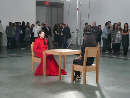 “Penso che lo scorso martedì un pene ciondolante si sia leggermente appoggiato alle mie parti basse. Questo non mi è mai successo o quanto meno non al Moma. Due figure nude, un uomo ed una donna, si trovano faccia a faccia davanti all’entrata dello spazio espositivo ed è normale che per continuare oltre ci si vede costretti a passare in mezzo ai due corpi. Così ho fatto io e proprio mentre pensavo di avercela fatta ho sentito una cosa, seguita da due rimbalzi, sfiorarmi la coscia. Benvenuti a The Artist Is Present, la prima grande retrospettiva dell’artista hard-core Marina Abramovic. Anche se trovo il lavoro dell’artista un poco melodrammatico e narcisista devo dire che questa retrospettiva che si affaccia su quaranta anni di carriera è decisamente affascinante oltre che oltraggiosa e coraggiosa.