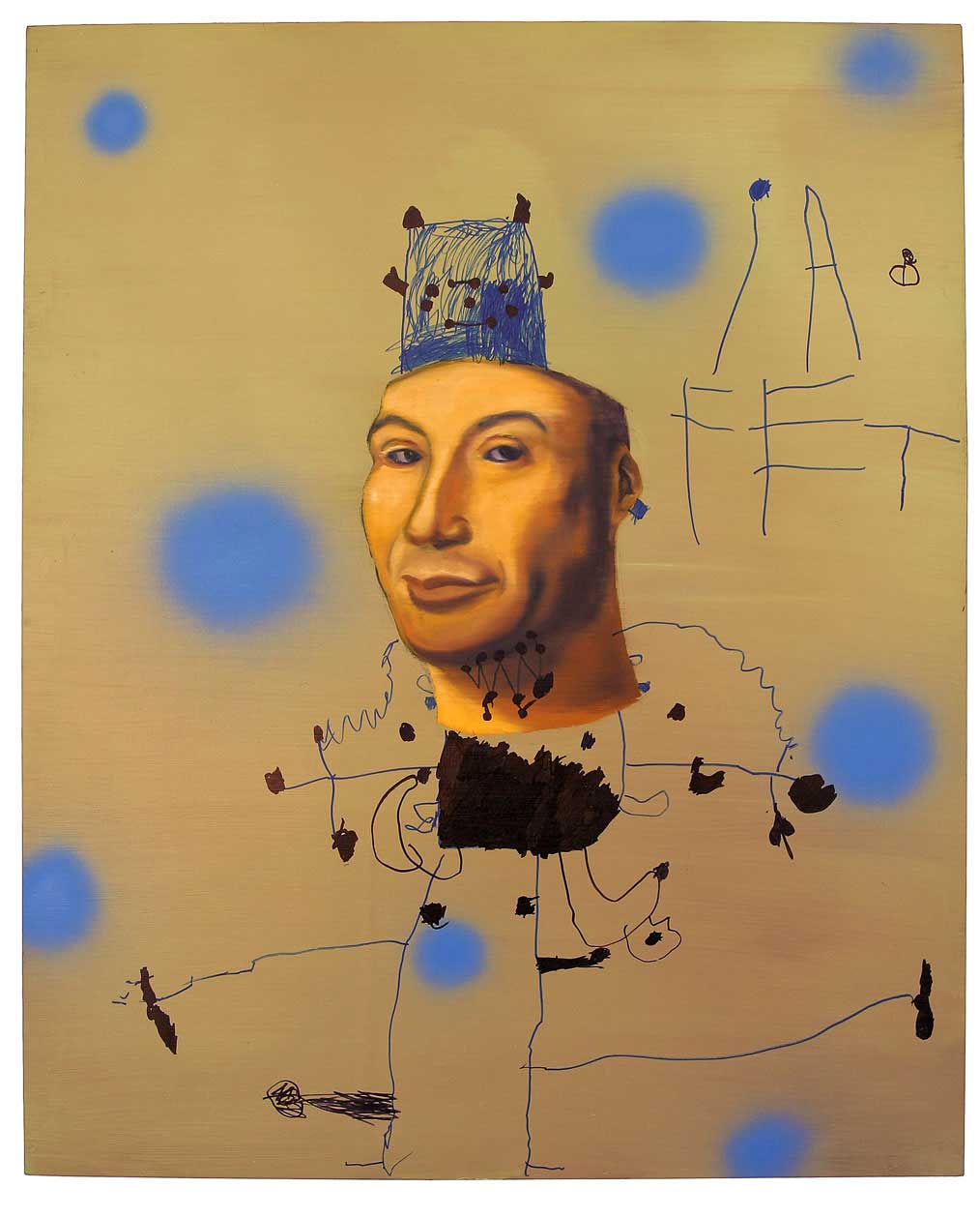Iafet, invece, non e’ facile da spiegare, vive nella sfera dei cerchi che si chiudono. Nel quadro campeggia una testa, ispirata al ritratto di un anonimo marinaio dipinto da Antonello da Messina, che -galleggia- su uno sfondo astratto. Su questo quadro Bulgini ha chiesto al figlio di quattro anni (Tiziano) di intervenire con dei pennarelli. Tiziano ha completato e decorato il corpo mancante ed ha aggiunto delle lettere con le quali ha composto la parola -ia fet- che da il titolo della mostra. Un titolo che apparentemente non aveva alcun significato, ma solo un suono interessante.
