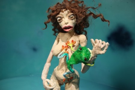In uno dei video, realizzati per la mostra con la tecnica in stop motion tipica dell’artista, i protagonisti sono una donna nuda dai capelli rossi e una rana, con cui la donna interagisce.