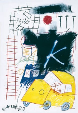 Lontana da un sistema di connessioni significative, la ricerca visiva dell’ultimo mezzo secolo qui presente nei testi degli autori di piu’ consolidata carriera (quelli già menzionati, ma potremmo ancora aggiungere Fernandez Pierre Arman e Giuseppe Guerreschi, Sebastian Matta Echaurren e Renzo Vespignani, Georges Mathieu e Giuseppe Zigaina, Rainer Fetting e Mario Schifano, Peter Phillips e Gianni Dova), accetta l’esperienza della caducità, della transitorietà, della precarietà del -tempo della crisi-. In modi diversi, per questi artisti, l’eikon, la figura e’ il movimento stesso di un -altro pensiero-, rispetto a quello della cultura classica, di un pensiero che transita attraverso un regno intermedio, che tiene insieme due -mezze verità-: la massima astrazione del concetto e la massima forza di cio’ che e’ stato via via definito, mito, analogia, metafora. Le immagini della mente, le immagini cruciali del moderno, si aggregano in costellazioni, ma si trasformano solo diventando linguaggio di memorie connesse a un destino e a una storia collettiva.
