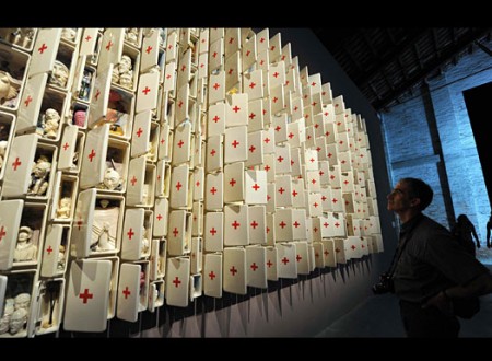 La questione è alquanto spigolosa poiché riassumere la creatività nazionale in un unico ambiente con uno o pochi attori non ci sembra comunque cosa facile. Va detto però che molte nazioni si affidano ad un unico o pochissimi artisti, il che solitamente garantisce un’unità d’insieme al riparo da incidenti estetici e ridicoli patchworks . Lo sbaglio del padiglione Italia edizione 2010 è forse stato quello di voler ostentare troppe opere per favorire il mercato e per proporre una visione a 360 gradi del nostro panorama creativo. I lodevoli intenti sono andati a cozzare con l’aberrante horror vacui generato da opere in netto conflitto l’una con l’altra e se generare contrasti è comunque una sperimentazione lecita, riprodurre una fiera all’interno di una Biennale non è certo una pratica coraggiosa o sperimentale. Magari, senza far preferenze od esclusioni faziose, sarebbe bastata la sola presenza di Masbedo e Bertozzi e Casoni, se non altro le opere avrebbero dialogato con lo spazio invece che annientarlo ed avremmo potuto realmente confrontare la nostra nazione con le altre.