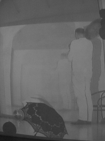 La Stanza, articolata sulle tre proiezioni fulcro dell’intera mostra, inserendo direttamente lo spettatore nella videoproiezione, instaurano un legame interattivo tra pubblico e opera d’arte; le immagini presentate restano ancorate ad una realtà presente mediante l’evidenza dell’ombra dello spettatore, ma mostrano, contemporaneamente, una realtà passata o solamente immaginata attraverso quegli oggetti che hanno lasciato una traccia della loro esistenza in quel luogo e in quello spazio sulla parete, ma che nel momento presente non ci sono più, o sono stati spostati.