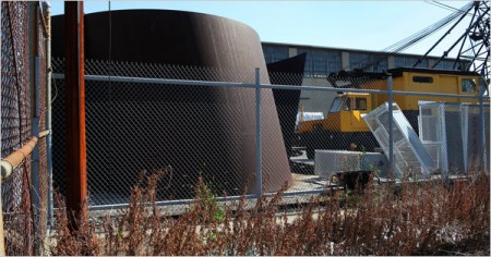 Stiamo ovviamente parlando di Tilted Arc, arco leggermente curvo di 3 metri e mezzo installato nella Federal Plaza di New York ma subito contestato sia dalla cittadinanza che dagli stessi committenti. L’epopea del Tilted Arc si concluse nel 1985 quando un’assemblea pubblica decretò il definitivo trasferimento dell’opera, la decisione fu aspramente osteggiata da Serra il quale non voleva in alcun modo spostare l’opera pensata per la Federal Plaza. Alla fine il Tilted Arc fu definitivamente smantellato e gettato nella spazzatura. A più di venti anni dall’infausto evento, un’altra opera di Serra è stata recentemente avvistata in un’area industriale vicino a gru e camion. Certo la scultura in acciaio è talmente imponente da faticar a trovare posto in qualsiasi altro sito. Comunque sia attualmente le sculture di Serra, ci riferiamo ad altre più piccole di questa, sono state vendute all’asta da Sotheby’s per la modica cifra di 1.9 milioni di dollari, quindi capite bene che razza di patrimonio giace all’interno di questa sorta di discarica.