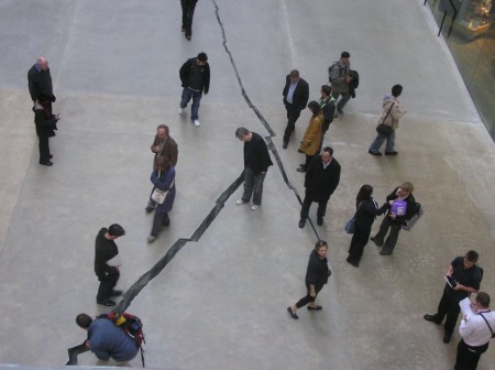 Nel 2007 Doris Salcedo eseguì l’installazione Shibboleth alla Turbine Hall del Tate di Londra. L’opera era in realtà una grande fessura nel pavimento di 167 metri di lunghezza. In alcuni punti la fessura era talmente grande che un bambino poteva caderci dentro. Bollettino medico: 15 feriti nel primo mese della mostra.