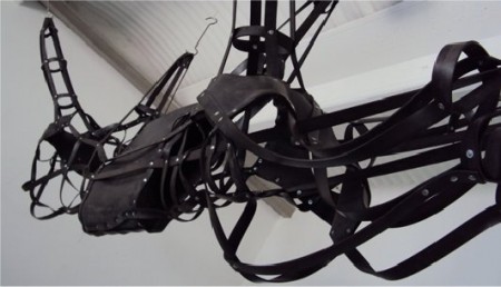 Il piano terreno verrà dedicato invece alla personale di Michelangelo Penso. Black Genetic è il titolo delle recenti realizzazioni in lattice di gomma che l’artista veneziano sospende con ganci da macello al soffitto della galleria. L’impatto delle sculture è alquanto paralizzante e non privo di un certo sapore”fetish” conferito anche dal colore nero delle composizioni. Di grande importanza, in questo ciclo di opere, è in realtà lo studio della genetica di cui l’artista si è occupato, evidenziando ed interpretando le caratteristiche strutturali e costituenti di segmenti del DNA.