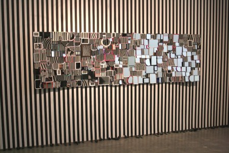 Altro pezzo in mostra è Untitled (Moire) un ovale con all’interno due luci fluorescenti arancioni. La superficie dell’ovale è un esempio di optical art con linee che si intersecano a formare strani inganni visivi. Insomma osservare da vicino le opere di Yuichi Higashionna si trasforma in un’avventura visiva fuori dal comune che testimonia l’importanza dell’ironia all’interno della produzione artistica. A volte la giovane arte dovrebbe evitare le vuote ostentazioni di ermetismo estetico e concettuale per abbracciare tematiche e forme frizzanti e fresche. Soprattutto divertenti, non spettacolari s’intende.