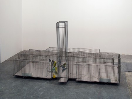 Foto: Marlon de Azambuja, Tate Modern, 2010, acciaio e pappagalli, 210x60x70 cm
