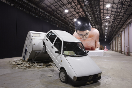 Alle porte del mistico mondo di Fischli e Weiss, che usano i simboli per banalizzare la nostra quotidianità, Paul McCarthy troneggia con la sua scultura rosa di porci e bush, qui la realtà è mostrata senza riguardo nei suoi aspetti peggiori come fosse un marshmallow di malcostume. Urs Fisher ci porta invece nel mondo delle fiabe, un mondo che però ha vita mutabile in balia di un equilibrio imprevedibile. Anri Sala usa suono e immagini per raccontare un lamento musicale che è in realtà espressione interiore di qualcos’altro. Il nostra Cattelan ci graffia come suo solito li dove il nervo è scoperto, dove la maschera è discostata. Nulla vi dirò su Tino Sehgal, è la ciliegina sulla torta.