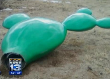 Il bizzarro evento è accaduto la scorsa settimana ad Albuquerque nel New Mexico. Il progetto Working Classroom Inc. aveva infatti creato una scultura pubblica sfruttando 50.000 dollari provenienti dalle tasse dei contribuenti. La somma era stata utilizzata per produrre un gigantesco cactus in fibra di vetro, simile ad una scultura di Jeff Koons venuta male. Alcuni giorni fa la scultura è stata presa di mira da ignoti vandali che l’hanno letteralmente buttata al suolo.