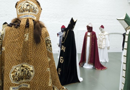 In una nuova mostra di opere mixed media ospitata dal MAC di Birmingham dal titolo Alieni Iuris (From Somebody Else’s Authority) in visione dal 26 marzo fino al prossimo 15 maggio 2011), il poliedrico artista Doug Jones attua una irriverente indagine sui rituali segreti e sul rapporto tra il sociale e lo spirituale. Nell’ installazione Inservi Deo et Laetare (che in italiano suona come servi Dio e sii felice) l’artista ci introduce nella straordinaria vita di un’immaginaria confraternita di santi, presumibilmente fondata nel 1573 da Zadak Nathan Solomon Jones.