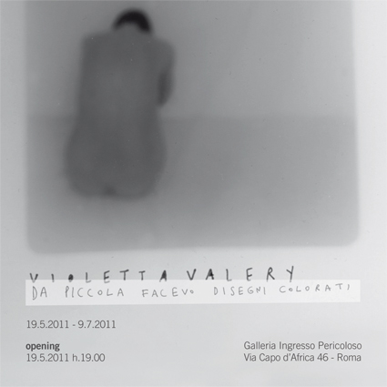 Lo spazio della galleria Ingresso Pericoloso di Roma si farà libro su cui appuntare pensieri scaturiti dalle relazioni personali, dai luoghi frequentati e dal trascorrere del tempo in occasione della mostra “Da piccola facevo disegni colorati”, prima personale romana di Violetta Valery (Roma, 1982), che sarà inaugurata il 19 maggio e potrà essere visitata fino al 9 luglio 2011.