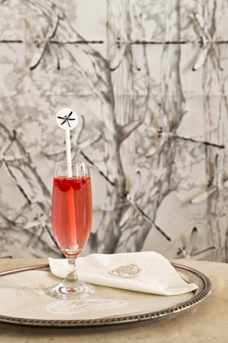 Ma andiamo con ordine: l’orchestrina inizia a suonare e i camerieri solerti iniziano a riempire bicchieri e poggiare sui tavoli vassoio di finger food su cui le signore ingioiellate si fiondano senza grazia. Noi ci dedichiamo al cocktail perché quello speciale, creato per l’occasione, si chiama Libellula: Cointreau, vodka, succo di ribes e prosecco. Ben equilibrato e piacevole al palato tant’è che tra stanchezza e stomaco vuoto devo avvertirvi: potrebbe causare lieve mal di testa, ma solo se ne bevete due o tre!