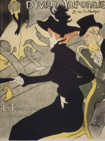 È noto come una parte della produzione dell’aristocratico Toulouse-Lautrec (Albi 1864 – Malromé 1901), si sviluppi sulla scia del “japonisme”, ovvero l’ispirazione all’arte giapponese; egli traspone tecniche e inquadrature di quel mondo affascinante e misterioso al contesto occidentale dei locali notturni e delle maisons closes, ovvero le case chiuse che frequenta non solo come artista. È nell’ambito delle sue celeberrime affiches, presenti in mostra nell’intero corpus, che la rielaborazione dei temi e del linearismo grafico giapponese si esprime più evidentemente: dai profili degli uomini in cilindro, alle ombre nere alle spalle del soggetto, alla silhouette “senza testa” della cantante Yvette Guilbert nel notissimo Divan Japonais.