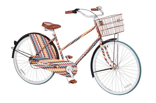 La bicicletta Missoni. Ovviamente l’altro fashion brand tutto italiano non poteva certo farsi superare da Cavalli ed allora, ecco una bellissima (?) bici da passeggio con i coloratissimi zigzag della casa. Di notte sarete ben visibili ma di giorno rischierete di far venire il mal di testa ai passanti.