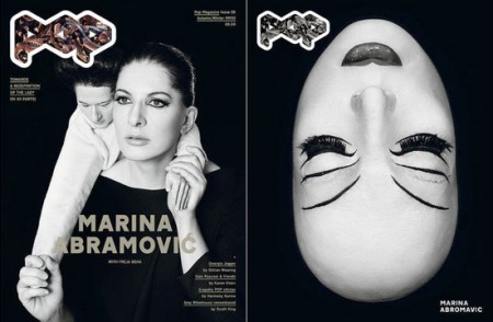 Inarrestabile Marina Abramovic, ormai la “Nonna della performance art” (come lei stessa ama definirsi) ha da tempo confermato di non essere ancora andata in pensione ed ha persino riaffermato il suo sex appeal posando per in copertina per Elle nel gennaio 2011. Oggi, a distanza di pochi mesi da quella copertina, l’artista ha deciso di fare il bis, posando per la cover di Pop Magazine celebre rivista lanciata dalla mistress dell’arte contemporanea Dasha Zhukova. Nello scatto in bianco e nero Marina Abramovic porta sulle spalle una bambola che ha le sue stesse sembianze, il bambolotto è stato realizzato dall’artista. In una seconda cover a edizione limitata, l’artista appare truccata alla maniera del teatro giapponese Noh.