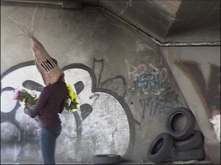 L’artista le ha indossate per undici brevi performance urbane: in questi luoghi disumanizzati (dalla metropolitana al parchetto) ha dato il via ad una serie di rituali della memoria, ogni momento del racconto è infatti simbolo di una delle case che ha abitato nella sua vita.