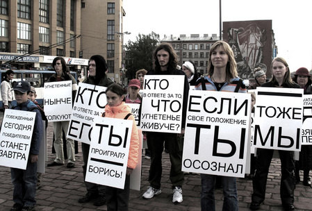 Probabilmente Russia Unita avrebbe vinto lo stesso anche senza barare ma questi brogli sono lo specchio di un potere che non si accontenta di vincere, un potere che vuole il predominio assoluto. Come se tutto ciò non bastasse Mr. Putin ha dichiarato di voler ritornare alla presidenza nel marzo del 2012 e la reazione dei cittadini è stata quella di riversarsi nelle strade per manifestare contro lo strapotere di un presidente che ha il completo predominio della politica e della vita sociale in Russia. Come volevasi dimostrare anche la comunità creativa si è unita alla protesta, seguendo le orme dell’ormai celeberrimo movimento Occupy. Il collettivo artistico Chto Delat ad esempio ha già iniziato a pubblicare sul sito web ufficiale alcune clips, video e foto che sbeffeggiano Putin. Anche i mitici Voina non stanno di certo a guardare ed hanno già iniziato ad agitare gli animi sul loro blog, nello specifico gli agguerriti artisti hanno posto l’accento sull’arresto di Philip Kostenko, attivista politico che negli ultimi giorni è stato illegalmente arrestato per aver protestato in piazza.