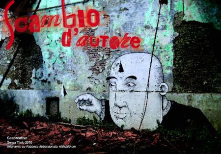 Scambio d’autore continua il percorso artistico iniziato con la mostra e si sviluppa in una sola notte all’interno della sala Alessi di Palazzo Marino in pieno centro a Milano per poi essere esposto nello spazio Superground nella periferia sud della città. L’arte diventa il trait d’union tra il passato del pittore francese e il presente di sei artisti contemporanei, tra il centro di Milano, dove il muro verrà dipinto, e la periferia della città, dove il muro verrà ricostruito, tra la notte in cui l’opera verrà realizzata e il giorno in cui l’opera verrà esposta.Per tutta la notte di ieri gli artisti, provenienti da differenti correnti espressive (poesia, arte pop, street art, graffiti, illustrazione e pittura), dipingeranno con colori acrilici ad acqua la struttura all’interno della Sala Alessi di Palazzo Marino costruita per allestire le opere di La Tour. La performance durata circa 17 ore durante le quali il backstage del lavoro degli artisti è stato ripreso e mandato in streaming on line sul sito www.lucisullarte.it.