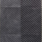 PERCHÈ: Lo spirito delle nuove generazioni è diviso tra tradizione e innovazione e l’ibrido che ne nasce è sicramente da conoscere per il futuro, poi ognuno potrà scegliere la strada che preferisce. Con Ned Vena si torna ai giochi prospettici optical, ma grazie ad un lavoro certosino con cui il vinile viene incollato su lastre di alluminio. Un bassorilievo lieve ed ipnotico. Hugh Scott-Douglas invece recupera la tecnica del cianotipo, una stampa fotografica in cui viene utilizzato il Blu di Persia, creando moderni monocromi sfumati. D’altronde non è più tempo del colore puro. Nazafarin Lotfi, moderna Rauschemberg, alterna sulla tela ritagli di carta, con graffette, nastro adesivo, filo da pesca, ma sulle sue tele il bianco e il nero spadroneggiano. Dan Shaw-Town invece trasporta su carta le geometrie di Carl Andre, un uso della grafite strabiliante. Infine N. Dash col suo approccio sciamanico, sceglie il pigmento indaco per colorare la stoffa, ma ciò che colpisce è la proprietà scultore della stoffa sospesa.