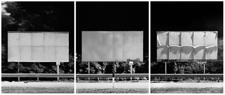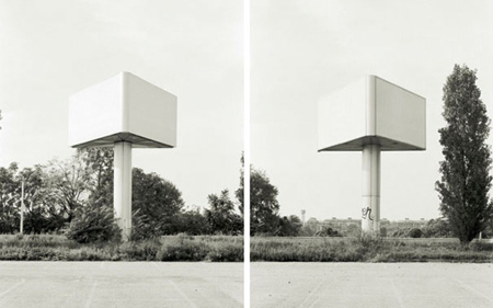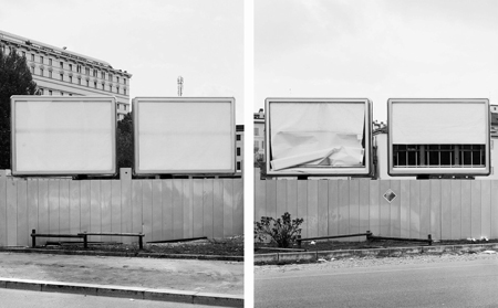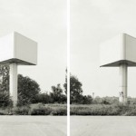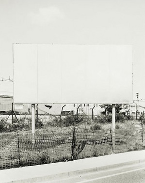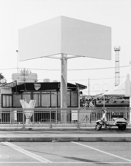 COSA: In mostra troviamo la serie Billboards, immagini raccolte anche in due bei volumi editi Damiani Editore. Il progetto, frutto di quattro anni di ricerca sul paesaggio urbano di Milano, si concentra sugli scheletri vuoti dei cartelloni pubblicitari, cosa succede quando manca il messaggio? Sono fotografie che riflettono su se stesse, il vuoto delle strutture pubblicitarie è rettangolare, come il mirino della macchina fotografica, il paesaggio circostante è indifferente a quella vacuità momentanea, il bianco e nero dell’immagine è netto. Partendo da artefatti umani ingombranti e fastidiosi, l’artista ha ripulito la realtà dal disturbo circostante, rendendoli quasi dei porti nella nebbia, confortanti rettangoli di vuoto.