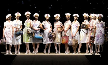 Risale invece al 1896 la creazione del classico monogramma LV affiancato a simboli di fiori e quadrifogli, altro cavallo di battaglia che compare praticamente su le borse,le scarpe ed altri accessori del grande brand. Louis Vuitton è quindi giunto fino ai giorni nostri con inalterato potere, ma ad aggiungere un pizzico di pepe in più alla collezione ci ha pensato Marc Jacobs direttore artistico dal 1997, artefice di un rilancio colossale. Jacobs ha infatti lanciato varie collaborazioni tra Vuitton ed il mondo dell’arte contemporanea, affiancando il brand ad artisti-star del contemporaneo quali Takashi Murakami e Richard Prince. Un binomio così fortunato e soprattutto così fruttuoso non poteva di certo non generare un giusto tributo. Ecco quindi che il Museo delle Arti Decorative di Parigi ha deciso di ospitare dal 9 marzo al 16 settembre 2012 la grande mostra Marc Jacobs – Louis Vuitton.