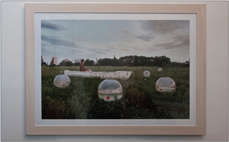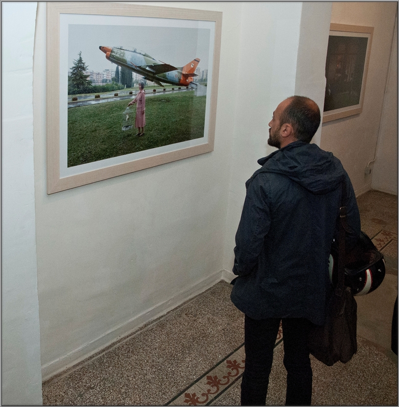La nostra fotografa, regista, costumista e scenografa offre al pubblico un linguaggio riconoscibile caratterizzato da un costante studio nei confronti delle inquadrature, delle pose dei personaggi, degli oggetti inseriti e degli indumenti di scena. Affascinata dalle fiabe e dai mondi incanti, Valentina è solita scegliere un territorio specifico in cui ambientare le sue istantanee, dove la popolazione locale diventa l’indiscussa protagonista. Se nella precedente mostra Su(L)reale la Vannicola si è lasciata ispirare dal genere della favola riattualizzandola attraverso usi e costumi contemporanei, per Living LayersIII ha impressionato nella sua pellicola luoghi noti al fruitore (come l’aeroporto militare Francesco Baracca, il centro commerciale o i numerosi parchi della zona) connessi tramite un legame di tipo emotivo da cui scaturisce un viaggio mentale in chi osserva l’immagine. Spazi concreti resi irreali, dove il tempo sembra fermarsi, mentre apatici protagonisti diventano testimoni di un mondo in contraddizione, generando un iniziale stupore ed interrogativi insoluti nello spettatore. Paesaggi deserti, presenze umane immobili e dallo sguardo perso nel nulla, vaghi riferimenti alla civiltà come un aereo o un’imbarcazione galleggiante in un prato verde, sinonimo della natura incontrastata. Fotografie che catturano ed immettono l’osservatore in una nuova dimensione, idilliaca, dove tecnologia e ambiente dialogano perfettamente senza contrapporsi. A ciò si aggiungono i continui rimandi alla cultura letteraria, cinematografica e artistica, sapientemente inseriti nei suoi lavori. Esemplare è l’opera su ‘le tre età della vita’. Il tema, caro a celebri autori del passato come Tiziano, Giorgione, Friedrich o Klimt, è rappresentato attraverso tratti che rimembrano la pittura meditativa fiamminga, come la simbologia nascosta nei soggetti ritratti e l’attenzione ai minimi particolari. Inoltre, l’atmosfera intimistica generata dall’illuminazione a lume di candela rammenda i dipinti seicenteschi di Georges De La Tour. Tuttavia, al di sotto di quest’aura composta si occultano segreti mai svelati, celati in tutte le foto qui esposte.