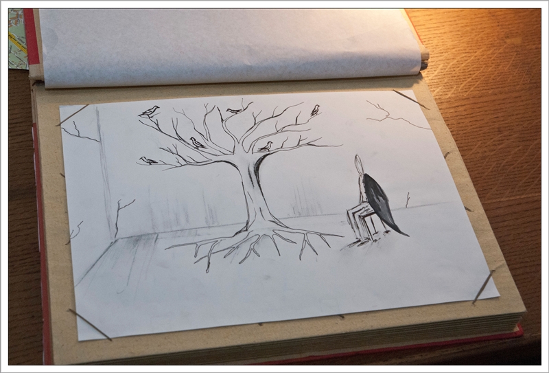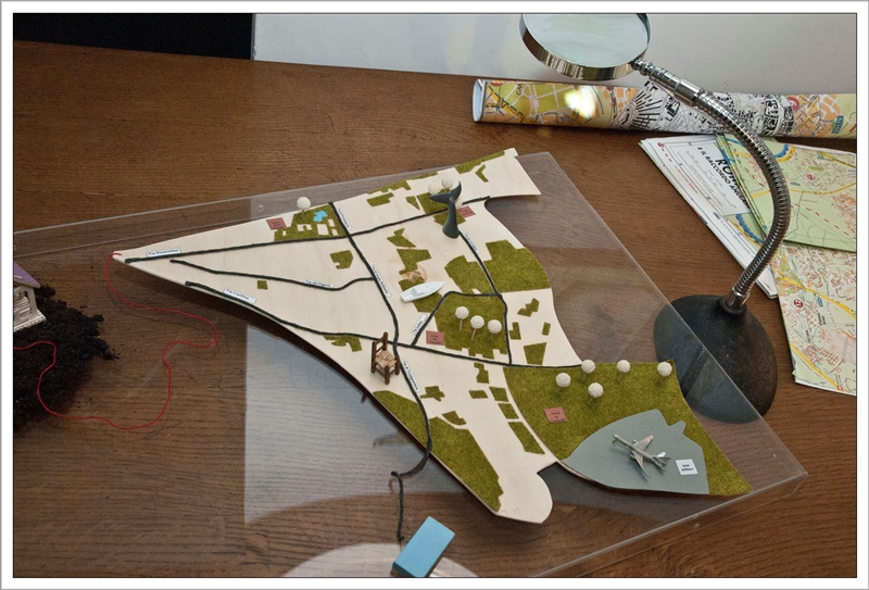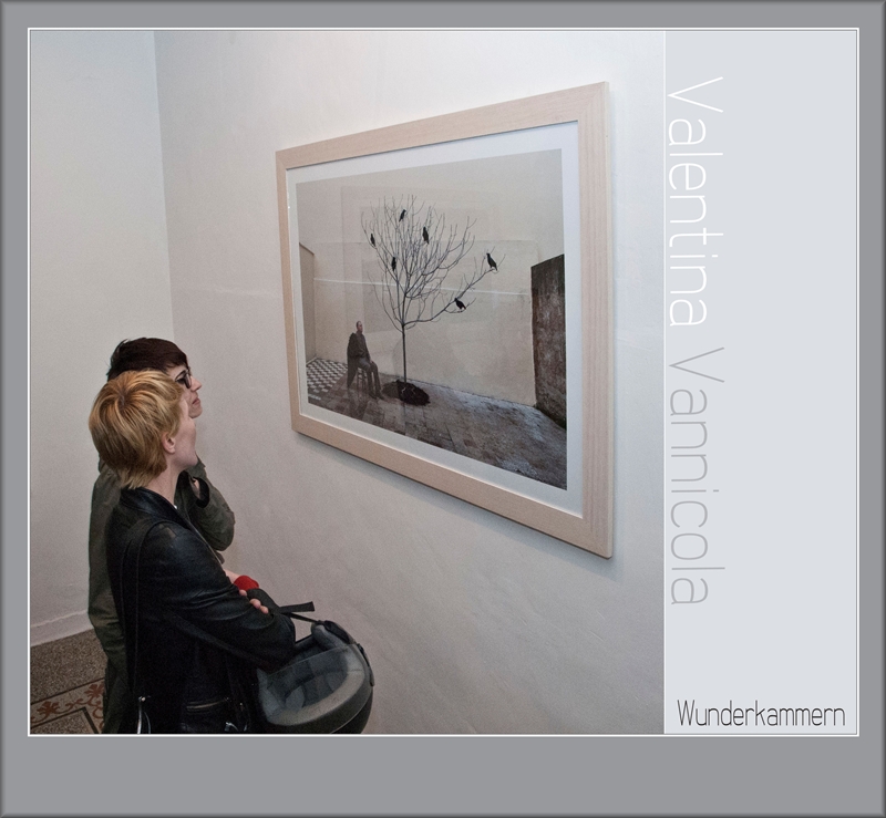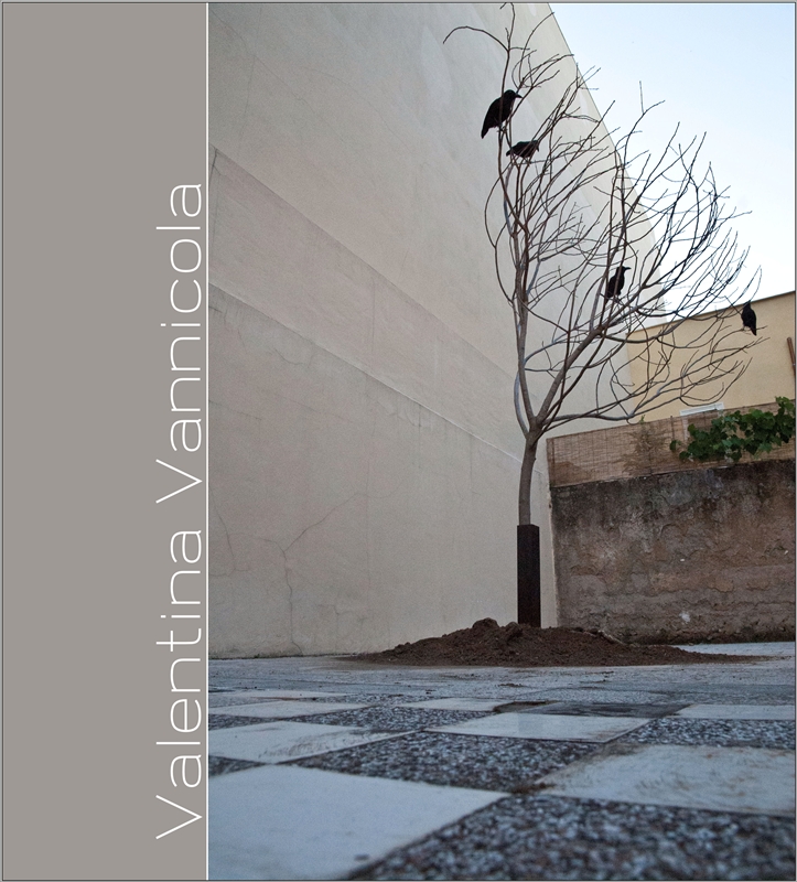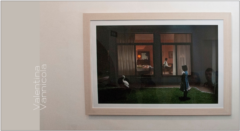 La solitudine è, invece, la parola chiave della scenografia collocata nell’affollato cortile esterno, dove sui rami di un albero spoglio sono accovacciati quattro nerissimi corvi, metafora dei nostri sgomenti, che scrutano l’orizzonte in attesa di tempi migliori per volare via. Fine ultimo di Valentina è far emergere le inquietudini, i dolori e le fissazioni che ogni essere umano nasconde in sé, incapace di liberarsene anche una volta chiuso l’uscio di casa. La mostra si conclude con un plastico che riproduce la mappa del quartiere ed i relativi siti in cui l’artista ha realizzato gli scatti, precedentemente studiati in schizzi visibili in un album tutto da sfogliare.