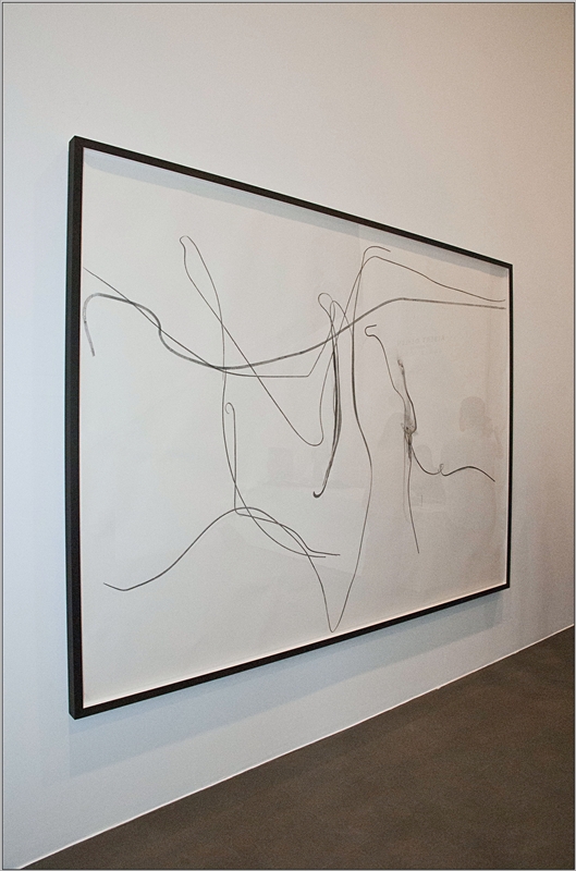 Mentre i precedenti lavori sono imperniati sul colore e sulla ripresa di elementi indiscutibilmente Pop, i carboncini in questione se ne discostano per approdare ad un astrazione basata sull’essenzialità e sull’uso del monocromo. Segni neri danno origine a tratti apparentemente casuali ed imponderati, in realtà altamente meditati. Opere grafiche realizzate situando il supporto cartaceo in posizione orizzontale, riallacciandosi al dripping di Pollock ed ai painting combines di Rauschenberg. Tuttavia, in Albert Oehlen non è presente quell’esigenza di fuoriuscire dalla bidimensionalità del quadro per invadere lo spazio esterno. I nove Untitled, datati tra il 2010 e il 2012, denotano una ricerca caratterizzata da uno stile puro incentrato sulla gestualità, dove eleganti e sottili linee sono intervallate da volute sbavature o cancellature che imprimono vitalità e spessore all’intera composizione. In quanto mera rappresentazione dell’Ego interiore dell’artista, ogni ‘drawing’ è liberamente interpretabile dal fruitore, il quale, a seconda della propria sensibilità, potrà ravvisarne forme o sagome di vario genere riconducibili, attraverso l’immaginazione, alla realtà tridimensionale quotidiana.
