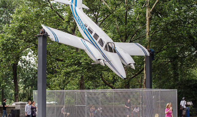 L’aereo di Paola Pivi è atterrato prima del previsto. Come ben ricorderete l’artista aveva installato un bimotore Piper Seneca di 10 metri sulla 5th avenue a New York. L’aeroplano, appeso in verticale per le ali, era in grado di ruotare lentamente sul suo asse, con sommo divertimento per il pubblico. L’opera dal titolo How I Roll (primo progetto di arte pubblica realizzato da Paola Pivi negli Stati Uniti) era stato sovvenzionato dal Public Art Fund e dal 20 giugno scorso, data della sua inaugurazione, non ha mai smesso di ruotare.