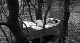 Emblematica, in questo senso, l’opera dove l’artista si ritrae giacente su un letto circondato da alberi spogli; con questa operazione simbolica l’autrice proietta all’esterno la propria interiorità, si mette a nudo, distesa inerme davanti allo spettatore testimone della sua fragilità.
