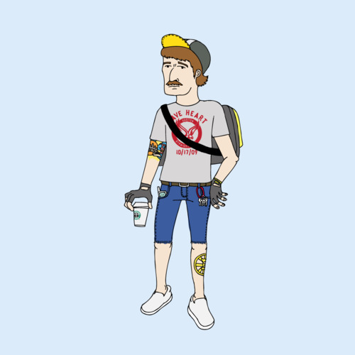 Un vero e proprio fan dell’arte contemporanea, non si perde una mostra e come potete ben vedere è appena sceso dalla bici con cui gira tutte le gallerie del centro. Durante il resto della settimana se ne sta nel suo bel covo etnochic tipo Rione Monti se siete di Roma o al quartiere Isola se siete di Milano e così via.