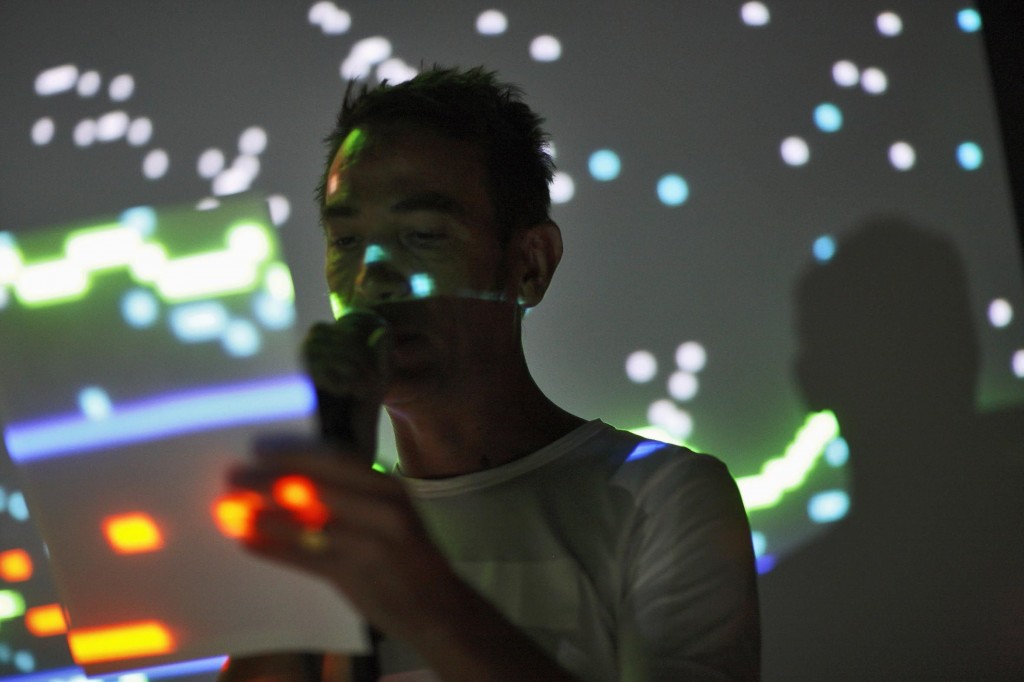 Carsten Nicolai, classe 1965, è un artista figurativo e musicista nato a Karl-Marx-Stadt (oggi vive tra Berlino e Chminitz), nonchè borsista nel 2007 della medesima Accademia. Dall’inizio degli anni ’90 Carsten sviluppa una ricerca artistica nel campo dell’arte e della musica, offrendo al suono una rappresentazione visiva, una forma legata al movimento, secondo la dottrina della cimatica. Influenzato dai sistemi scientifici, Nicolai utilizza spesso modelli matematici e cibernetici come griglie e codici, così come errori casuali e di auto-organizzazione delle strutture.