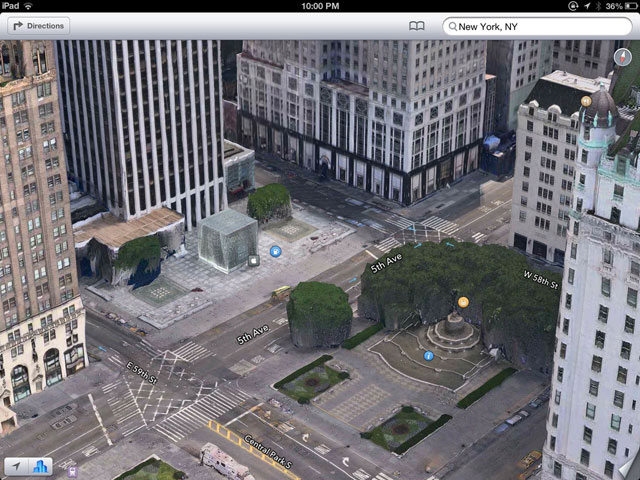 Una delle novità più eclatanti di questa nuova versione di iOS sono le mappe, non più Google ma Apple, con un bel navigatore integrato che per ora non fa altro che sbagliare, a Dublino infatti è comparso un aeroporto inesistente mentre la stazione di Paddington a Londra non esiste e che dire poi di Belgrado dove è scomparso il fiume Sava. Queste ed altre gravi pecche sono però controbilanciate da una caratteristica assai bizzarra che a noi amanti dell’arte non può che far piacere.